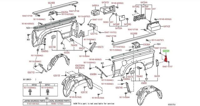 - One Genuine Toyota Tacoma Left Bed Side Corner Trim 62572-04020
