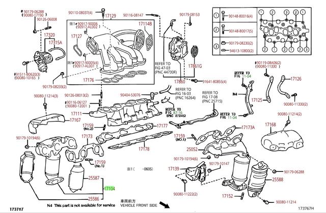 Exhaust Manifold | Passenger Side (Rear of Motor) | 2004-2005 Camry V6 - Toyota (17140-20050)